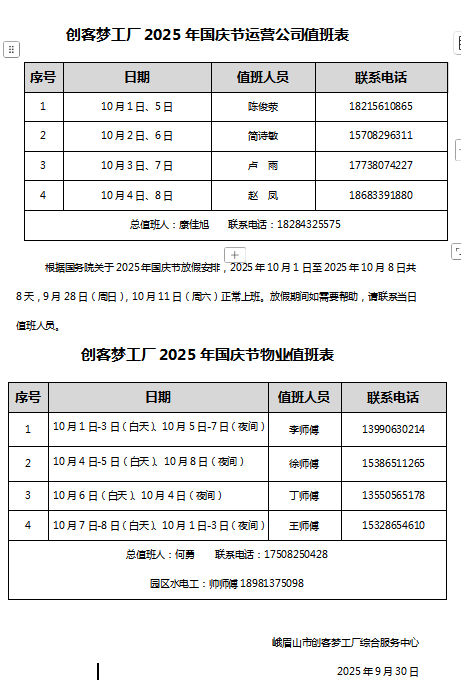 国庆、中秋双节将至,园区放假安排及安全工作相关事项确如下: